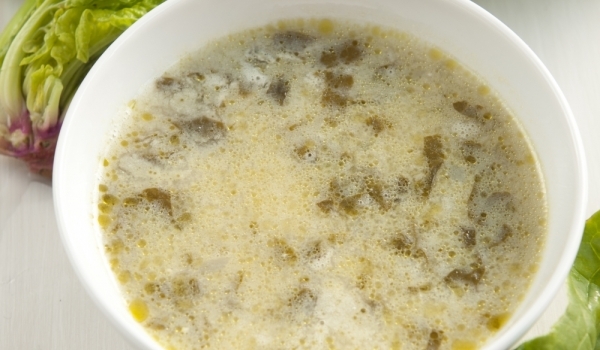 Киселеца, марулята, калофера и целината се режат на ситно. Задушават се в мазнината. Като поизсъхнат, им се сипва 1.5 л топла вода. Посолявате и варите 45 минути. Разбивате яйцата с прясното мляко и...