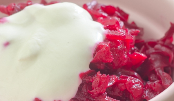 Зелето се нарязва на тънки ивички. Посолете и го оставете да престои 1-2 часа. Кипнете 1 л вода с чесъна, дафиновия лист и черния пипер. Залейте зелето и след 10-тина минути го отцедете и подправете...