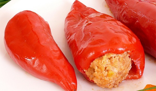 Отрежете капачетата на пиперките и ги почистете от семето. Нарежете месото на малки парчета и го задушете в мазнина. Надробете сланината на късчета. Сложете в купа сиренето, месото и сланината. Под...