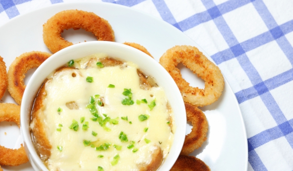 Обелете лука и го варете в подсолена вода за 25 минути. Изсипете го в гевгир и го оставете да отцеди много добре, след което го пасирайте. Добавете разбитите яйца и сметаната, черен пипер и сол. Разб...