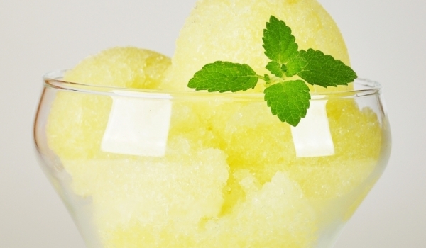 Чашите или купичките за сорбето се охлаждат в хладилника. Кората на лимоните се настъргва. Лимоните се изцеждат и в сока се слага желатинът. Щом набъбне, се разтваря на водна баня на бавен огън. Доба...