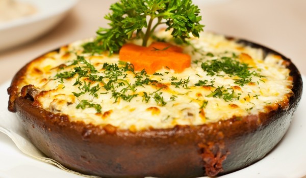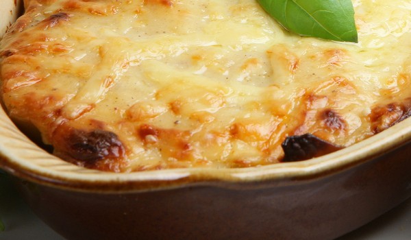 Направете светла запръжка от маслото и брашното и я разредете с прясното мляко, като разбивате непрекъснато. След като сосът кипне, намалете котлона и оставете да поври за 5 минути. Добавете сиренето,...