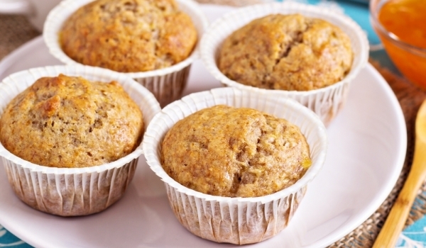 Кашуто, орехите, фурмите се нарязват на ситно и се добавят към овесените трици, брашното, намачкания банан, добавя се медът. Яйцето и киселото мляко се разбъркват и се добавят към сместа, бърка се до...