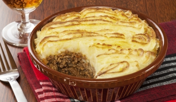 От брашното, солта, нарязаното на тънки парченца масло, едно яйце, виното и половината индийско орехче се замесва тесто. Оставя се за 30 минути в хладилника. Беконът се реже на ленти, лукът – на шайб...