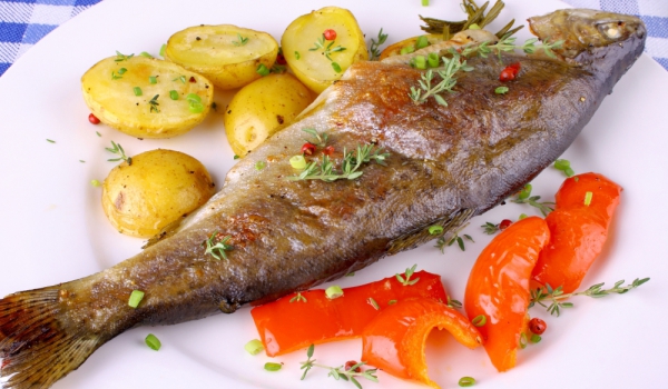 Печена пъстърва с каперси