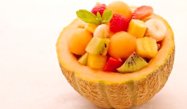 Пъпешът се обелва и семките се отстраняват. Пъпешът се реже на малки кубчета. Добавят се малините и всичко се разбърква. Поръсва се със захар и се украсява с топки сладолед.